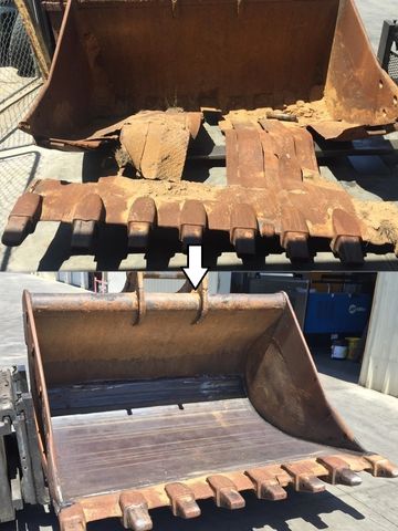 We replace the entire floor of buckets using our CNC press brake to form the floor, and then weld it in the same place. We also replace cutting edges and weld in new ones with new teeth.